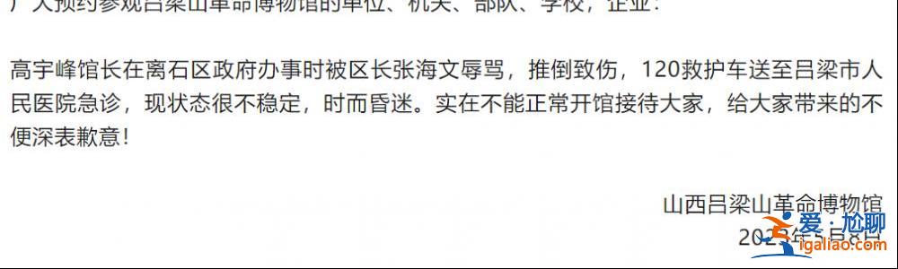 山西一博物館館長遭區(qū)長辱罵推倒致昏迷?館長本人最新回應?