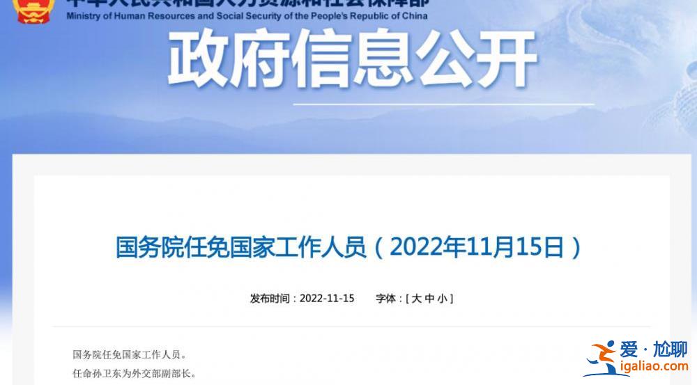 北京日報-長安街知事消息,11月15日,人力資源和社會保障部網站發布消息,國務院任免國家工作人員,任命孫衛東為外交部副部長。...